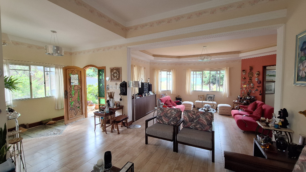 Excelente imóvel com vista esplendida para as montanhas, o imóvel contem no nível da rua: 03 dormitórios sendo uma suíte, banheiro social, sala de visita, sala de TV, sala com lareira, escritório, lavabo, cozinha, sala de jantar; Parte inferior e mais uma casa com 03 dormitórios, 02 banheiros, sala, cozinha, academia, salão de festas, churrasqueira, banheiro, espaço para hóspede, capela, jardim, varanda a volta toda, garagem para 08 carros.